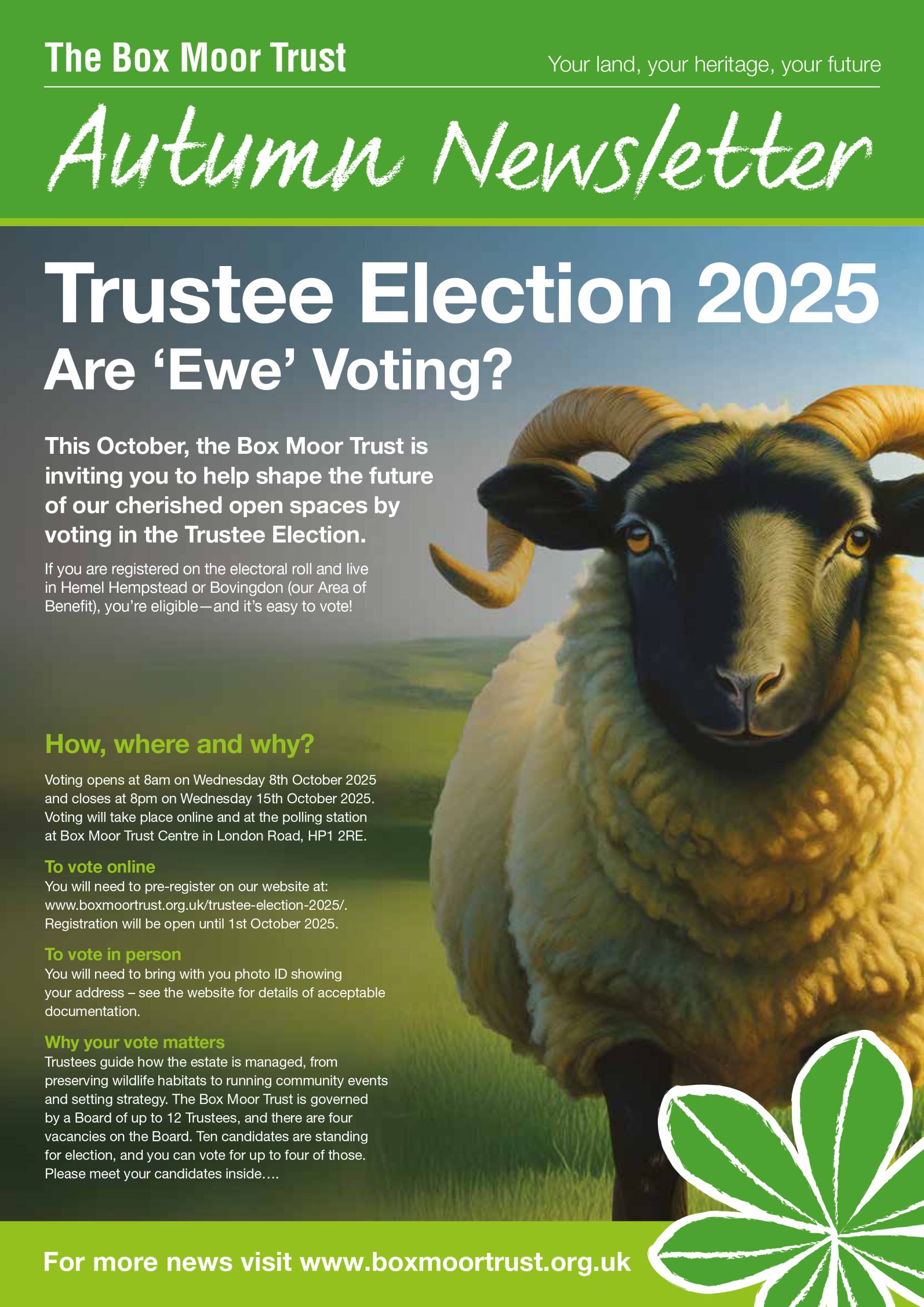 Keep up to date with news and developments by becoming a “Friend” of the Box Moor TrustThe Box Moor Trust is a registered charity