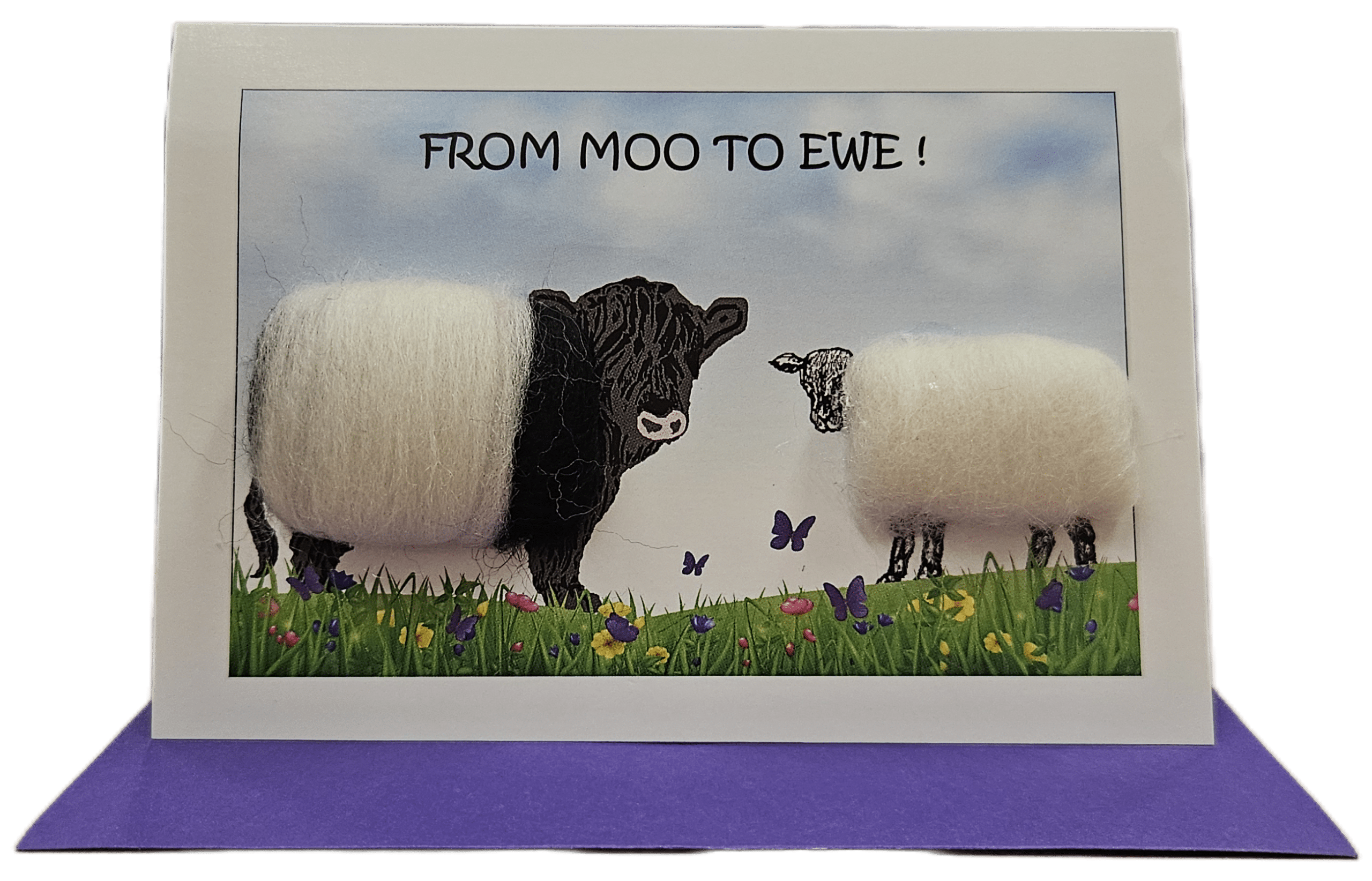 A delightful card featuring a Belted Galloway Cow and Ewe by We Must be Mugs cards.
