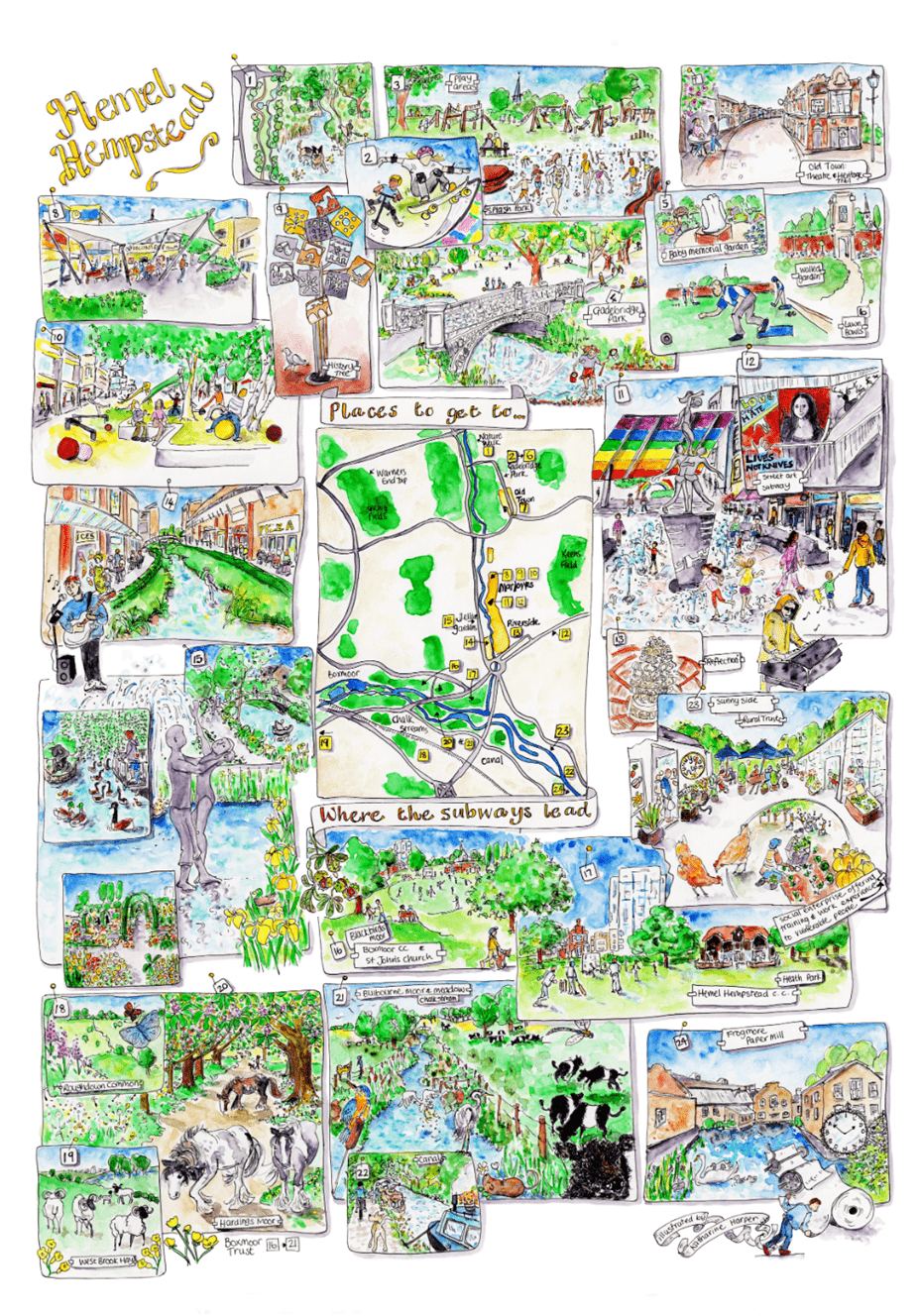 Lovely places to explore and enjoy, starting at the Magic Roundabout subways in Hemel Hempstead.